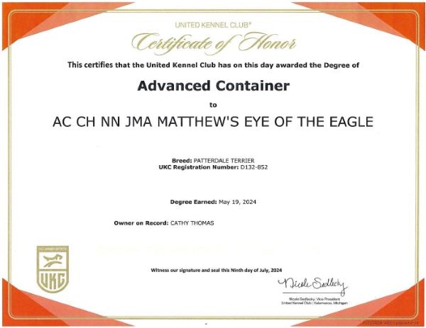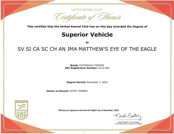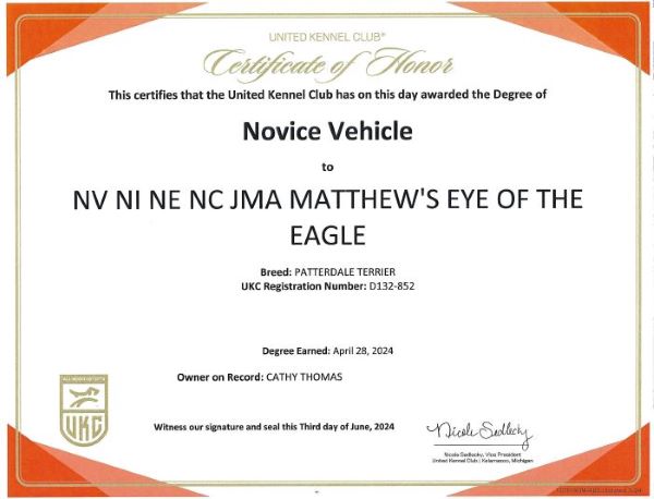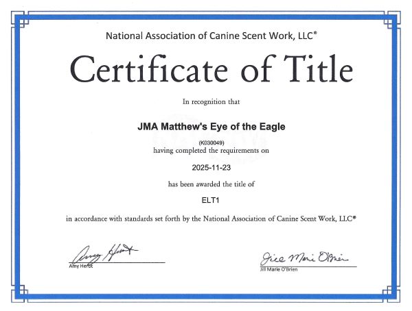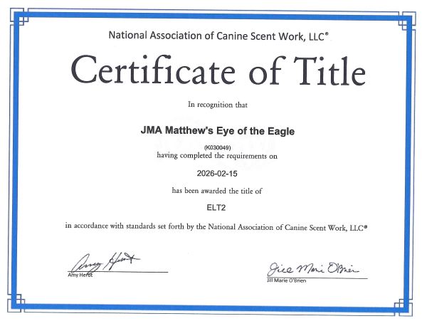 Talon completed her Nosework 3 level December 8, 2024