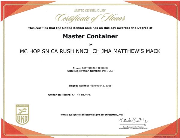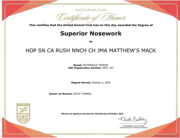Mack first Nosework trial!! 6 first place and 2 titles!