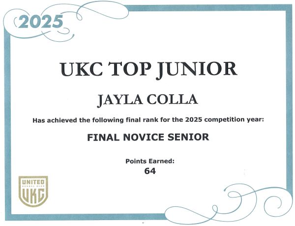 My granddaughter Jayla turned 14 in September 2025 and has attended many training sessions and competitions with me with all my dogs for years. When Tazzie had her third and last litter in September 2023 Jayla fell in love with one female puppy at day 1. She asked if she could have that puppy and I tried to convince her to see personalities/wait for Embark test/health checks etc. Nope she wanted the one puppy and named her Lana! I personally wanted to wait until she was 8-10 weeks old so kept my mouth shut....long story short this was the perfect dog for Jayla. Lana is 100% healthy (Embark clear)/very drivey/good looking and wants to do everything Jayla shows her. Jayla has done all the competitions with her and at 2 years old she has 53 titles!
