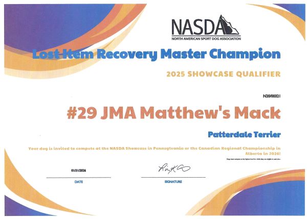 Mack first Nosework trial!! 6 first place and 2 titles!